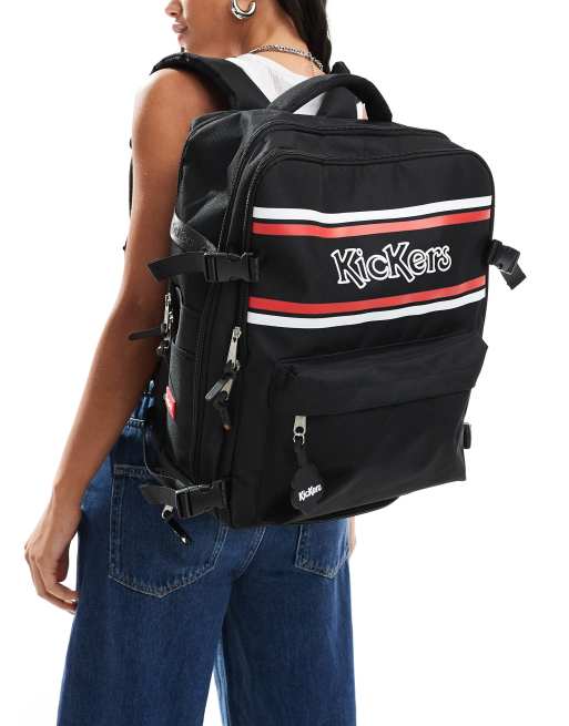 Kickers - Firkantet rygsæk med rødt logo i sort i retro-stil