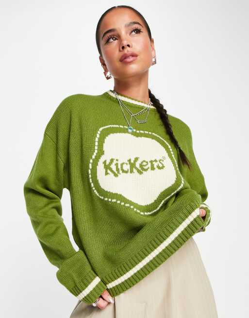 Kickers - Grøn trøje med stort logo i fleurette intarsia-strik
