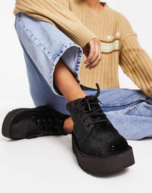 Kickers - Kick Hi Stack - Sorte støvler med glimmer i velour