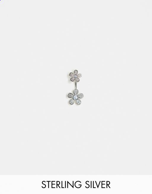 Kingsley Ryan - Navlepiercingsmykke med dobbelte rhinstensblomster i sterlingsølv