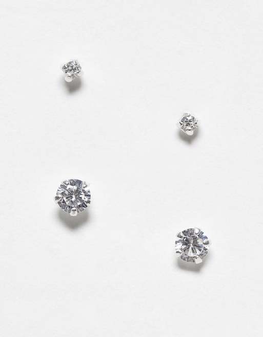 Kingsley Ryan - Pakke med 2 par sølvfarvede ørestikker med krystaller i sterlingsølv