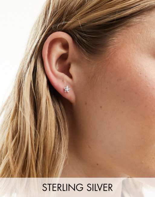 Kingsley Ryan - Sølvfarvede 6 mm ørestikker med krystalhjerte-design i sterlingsølv