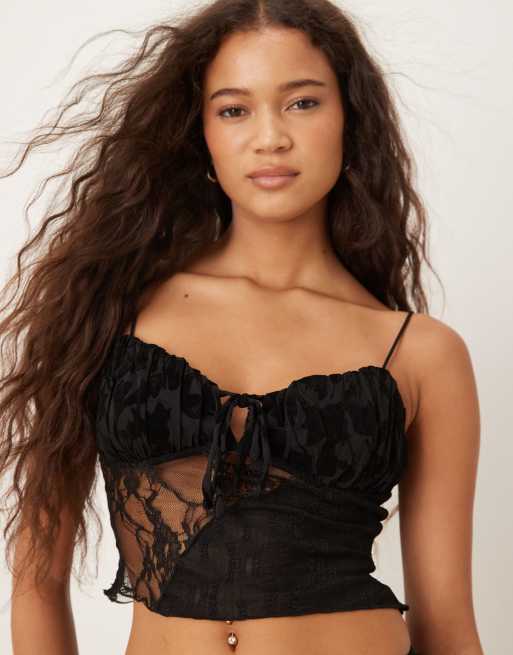Kiss The Sky - Sort cami-top med splejsede blondedetaljer - Del af sæt