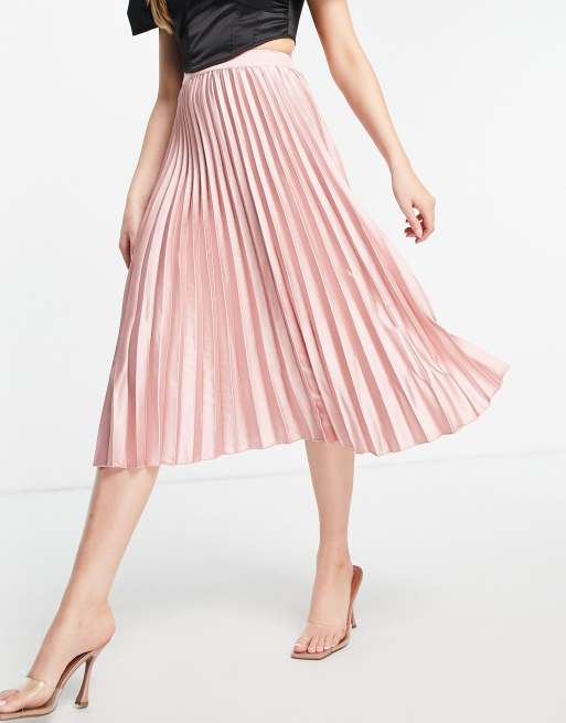 Koco & K - Plisseret midinederdel i lyserød satin