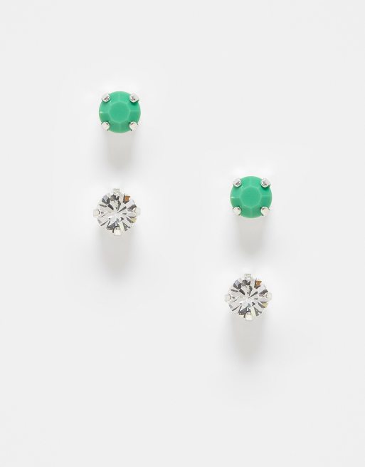 Krystal London - Pakke med to par ørestikker med ægte krystal i krystal og mintgrøn