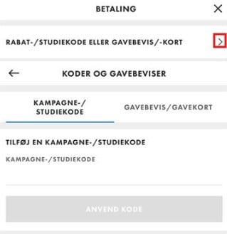 Du skal indtaste rabatkoden præcis som den står og ikke bruge mellemrum. Indtast eller kopier og indsæt koden i 'Rabat/studiekode'-feltet: