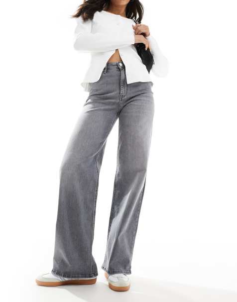 Noisy May - Sallie - Lysegrå jeans med høj talje og svaj