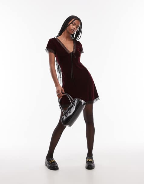 Miss Selfridge - Chokoladebrun figursyet minikjole med flagrende kant og ståkrave
