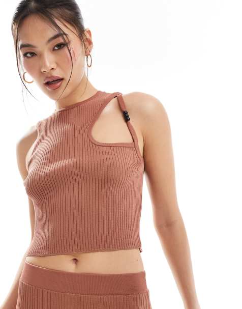 ASOS DESIGN - Stropløs top med rynker i siden i beige - Del af sæt