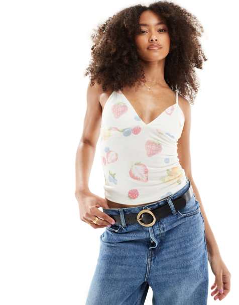 MIX OG MATCHAbercrombie & Fitch - Lyserød pyjamastop med cami-stropper og blondekant i satin - Del af sæt