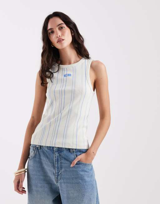 Laagam - Broderet tanktop med lyseblå striber