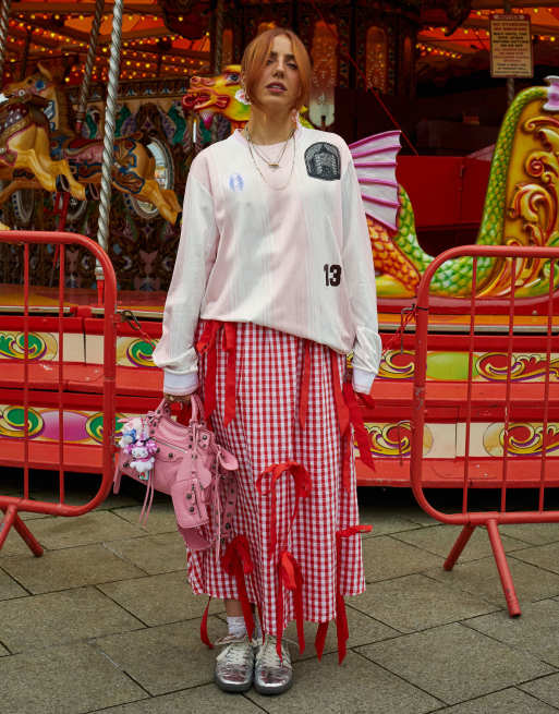 Labelrail x Laura Elizabeth Klein - Midinederdel med sløjfedetalje og rødt gingham-tern