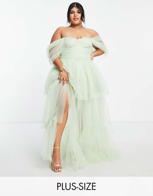Lace & Beads Plus - Salviegrøn offshoulder-maxikjole i lagdelt tyl - Kun hos ASOS