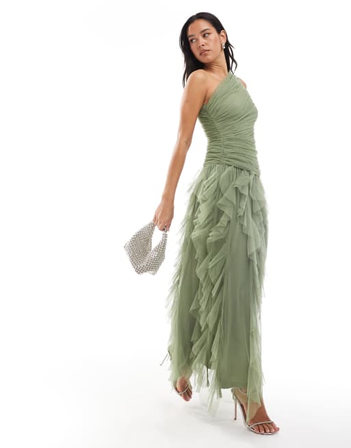 Lace & Beads - Brudepiger - Rød og skovgrøn oneshoulder-maxikjole