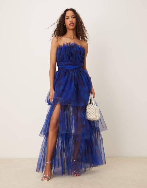 Lace & Beads - Koboltblå bandeau-maxikjole i tyl