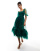 Lace & Beads - Skovgrøn midaxi-kjole med korset og flæser i tyl