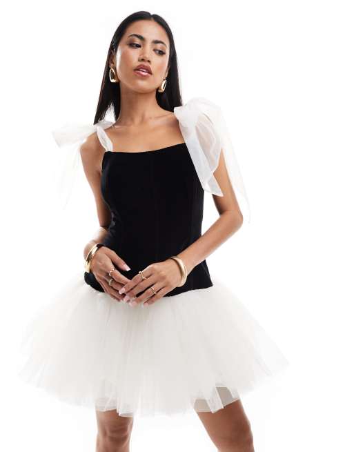Lace & Beads - Sort minikjole med sløjfedetaljer i kontrast