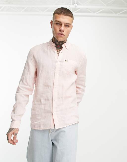 Lacoste - Langærmet skjorte lyserød hør med logo
