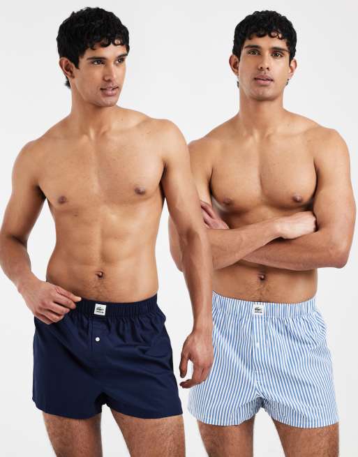 Lacoste - Pakke med 2 par vævede marineblå/stribede boksershorts