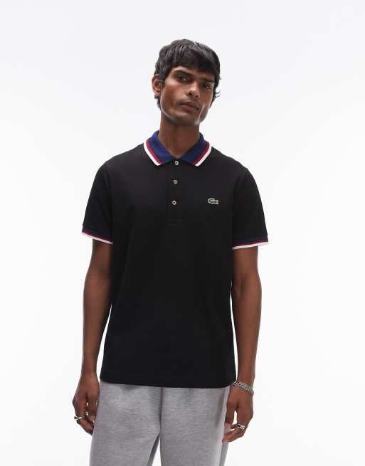 Lacoste - Sort poloskjorte med kontrastkanter