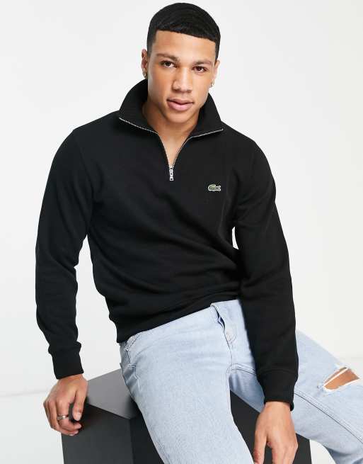 Lacoste - Sort sweatshirt med halv lynlås og ståkrave