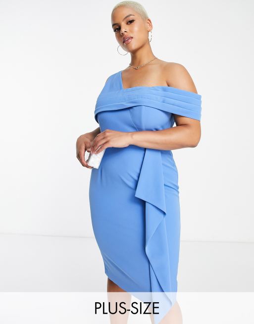 Lavish Alice Plus - Asymmetrisk offshoulder-midikjole i blå