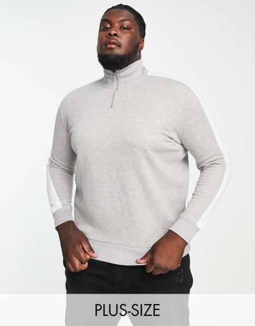 Le Breve Plus - Lysegrå sweatshirt med 1/2 lynlås og panel