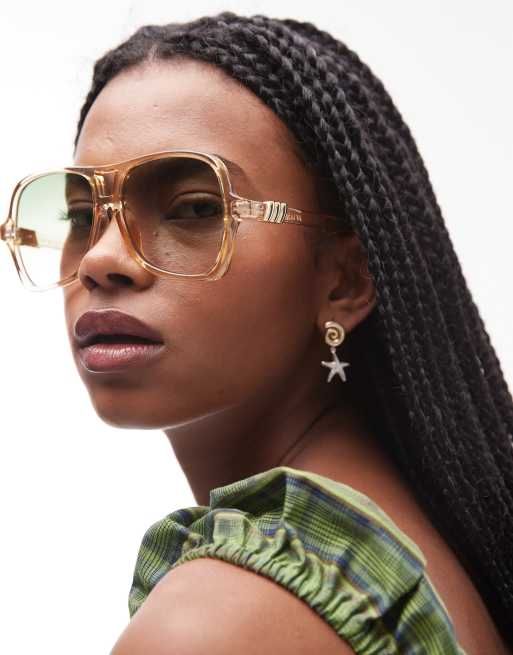 Le Specs - Fortune Teller - Sandfarvede store aviator-solbriller med grønne graduerede glas