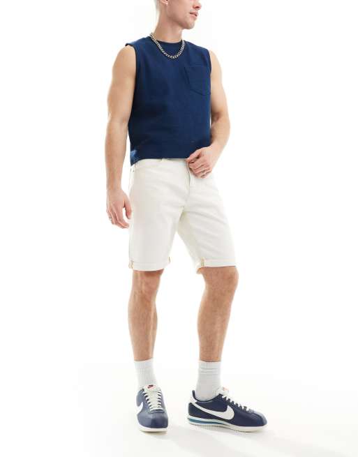 Lee - Hvide denimshorts med lige ben og 5 lommer