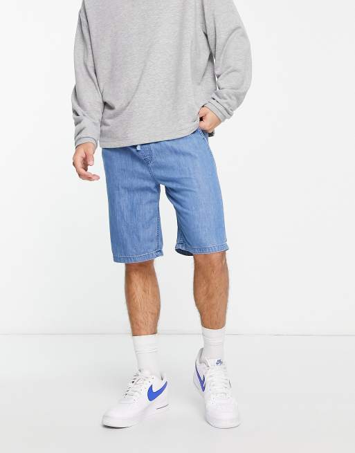 Lee Relaxed - Mellemblå afslappede denimshorts i bomuld og hamp med løbesnor