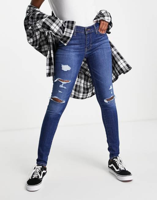 Levi's - 710 - Super skinny-jeans med flænger i mørkeblå