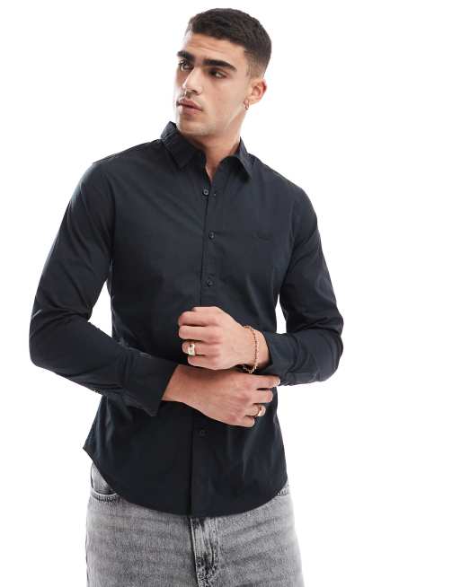 Levis - Battery - Sort skjorte i poplini slim fit med flagermusevinge-logo