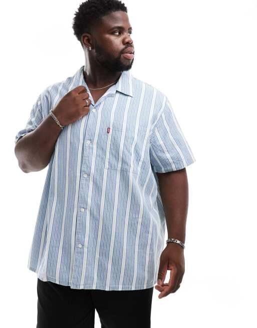 Levi's Big & Tall - Sunset Camp - Løstsiddende skjorte med korte ærmer og striber i lyseblå