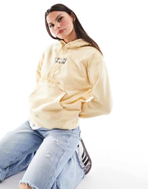 Levi's - Cremehvid hættetrøje med logo med leopardprint