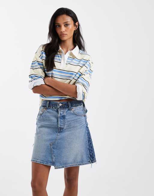 Levi's - Deconstructed - Lyseblå forvasket midinederdel i denim