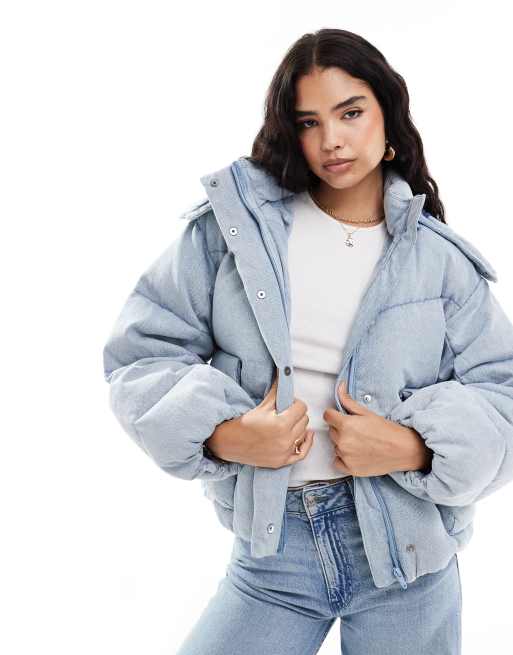Levi's - Lyseblå dunjakke i denim med bobletekstur og hætte i kort westernstil