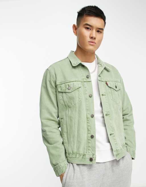 Levi's - Lysegrøn trucker-jakke med lommer i denim