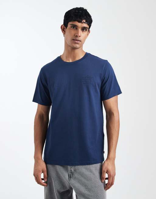 Levi's - Marineblå afslappet T-shirt med broderet logo på brystet