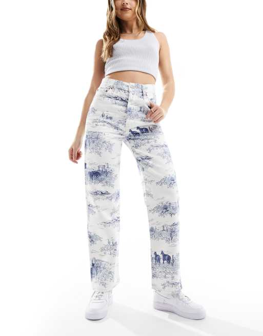 Levi's - Ribcage - Hvide ankeljeans med lige pasform og marineblåt print