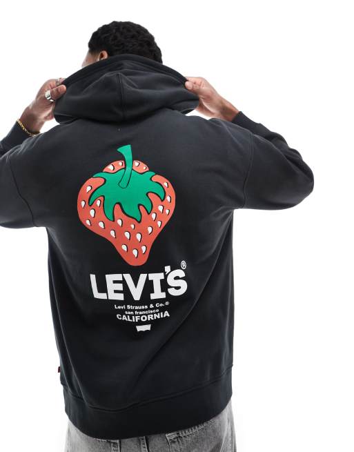 Levi's - Sort hættetrøje med jordbærlogo på ryggen