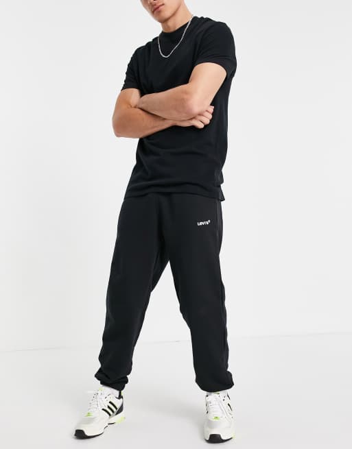 Levi's - Sorte joggingbukser med rød logofane i sweatshirt-stof