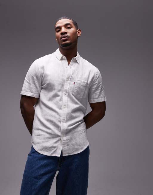 Levi's - Sunset - Blå/hvid kortærmet regular fit-skjorte i hør- og bomuldsblanding med striber