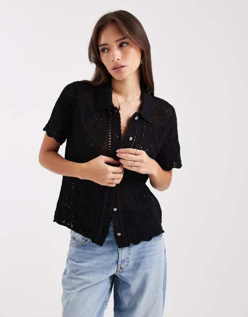Levi's - Susanna - Sort hæklet skjorte med blomstermønster