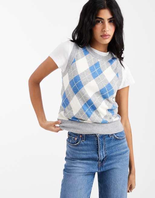 Levi's - Tara - Grå strikvest med argyle-tern i forskellige farver