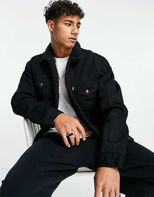Levi's - Trucker-jakke i sort imiteret lammeskind