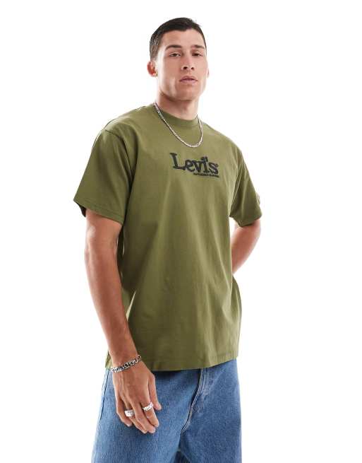 Levi's x ASOS - Kakifarvet T-shirt med broderet retrologo på brystet - Kun hos ASOS