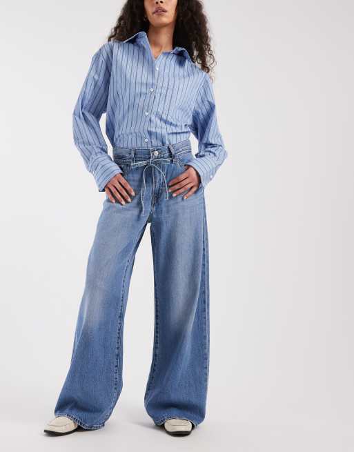 Levi's - XL - Mellemblå jeans med lige ben og bindebånd i taljen