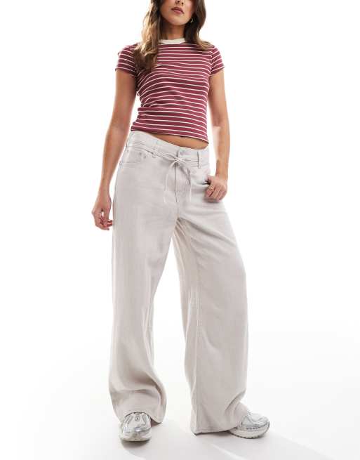 Levi's - XL - Råhvide lige bukser med bindebånd i taljen i hørblanding