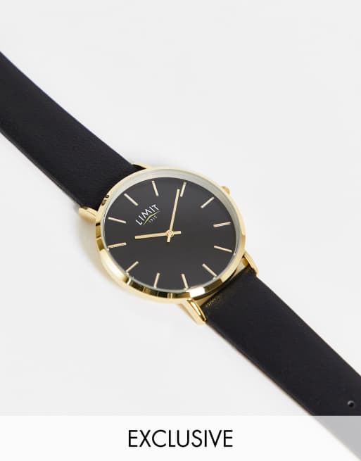 Limit - Unisex - Rundt armbåndsur med sort rem i imiteret læder - Kun hos ASOS