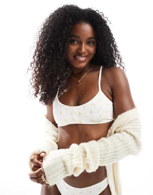 Lindex - Gul og blød bralette med blomsterprint og knapdetalje